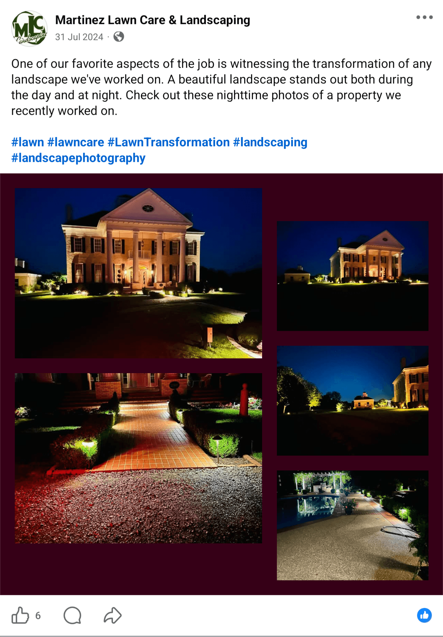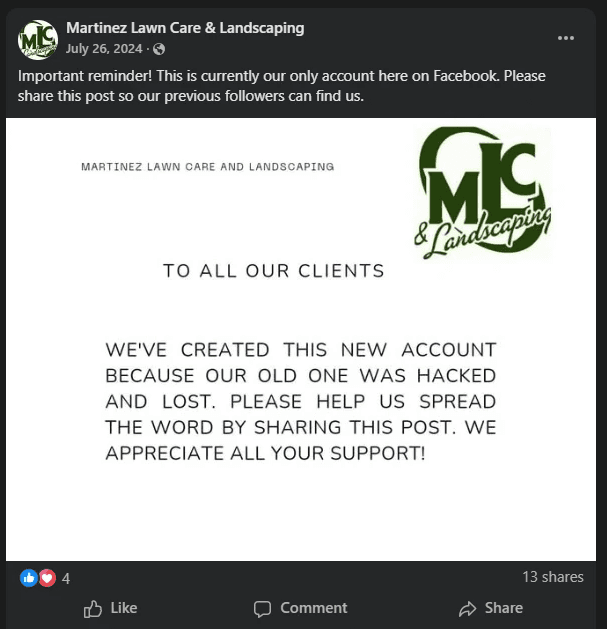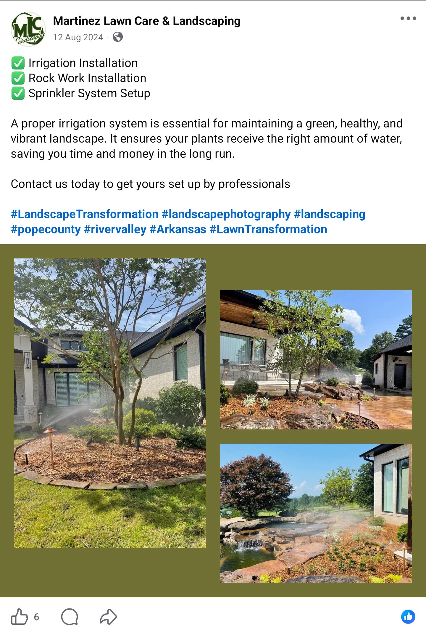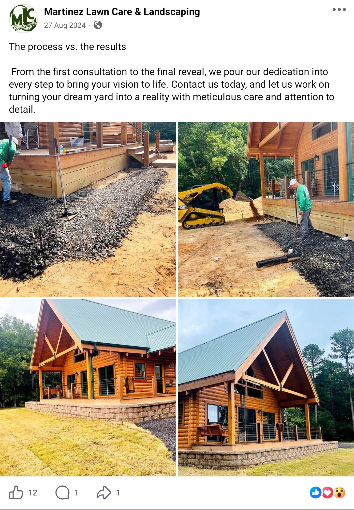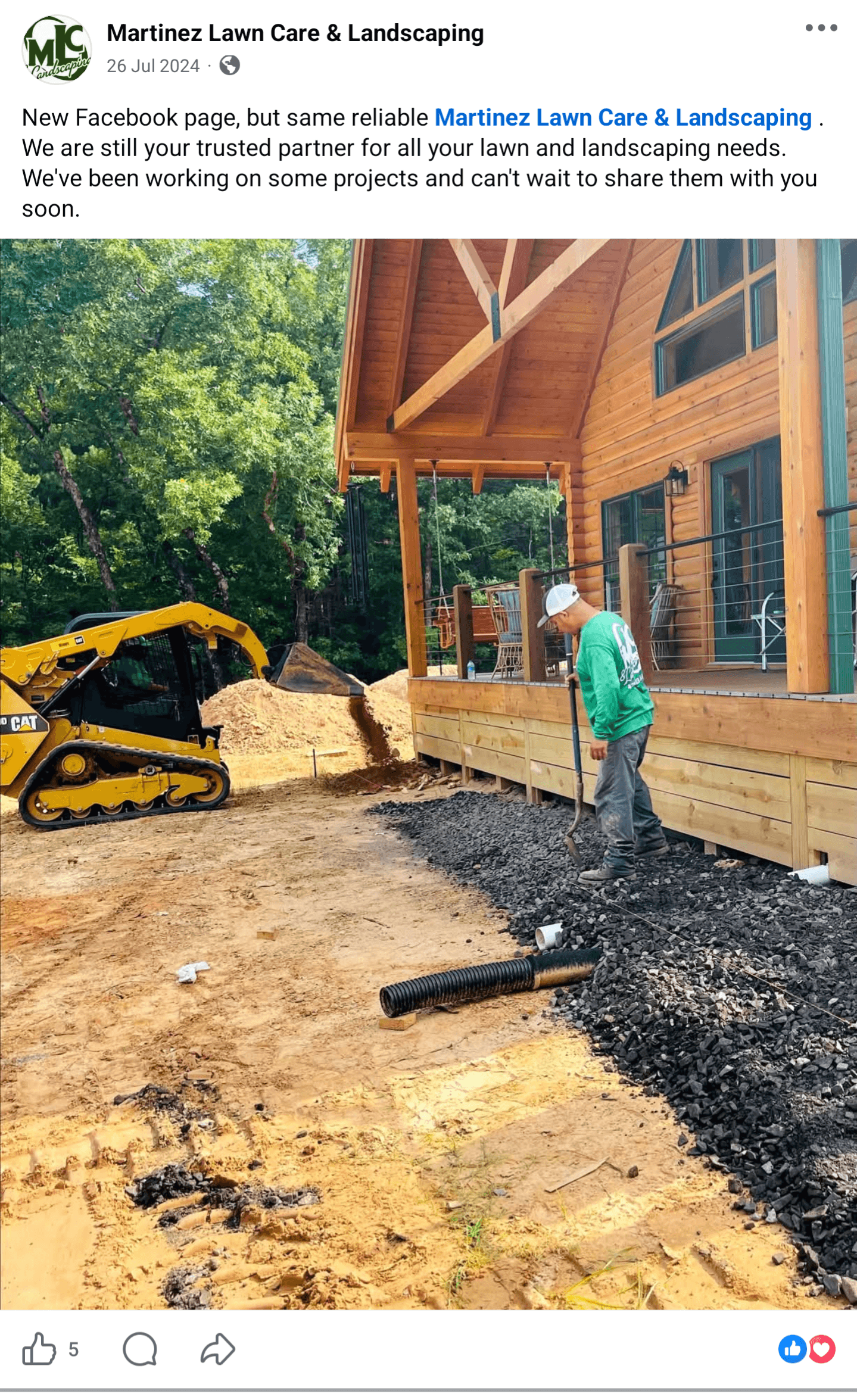 Martinez Lawn Care and Landscaping is a local business based in Arkansas, US, offering lawn care and landscaping services to their community. When their Facebook page was hacked and lost entirely, they needed someone to help them start over and make it feel like nothing had changed. A mutual contact referred them to me and I got to work.