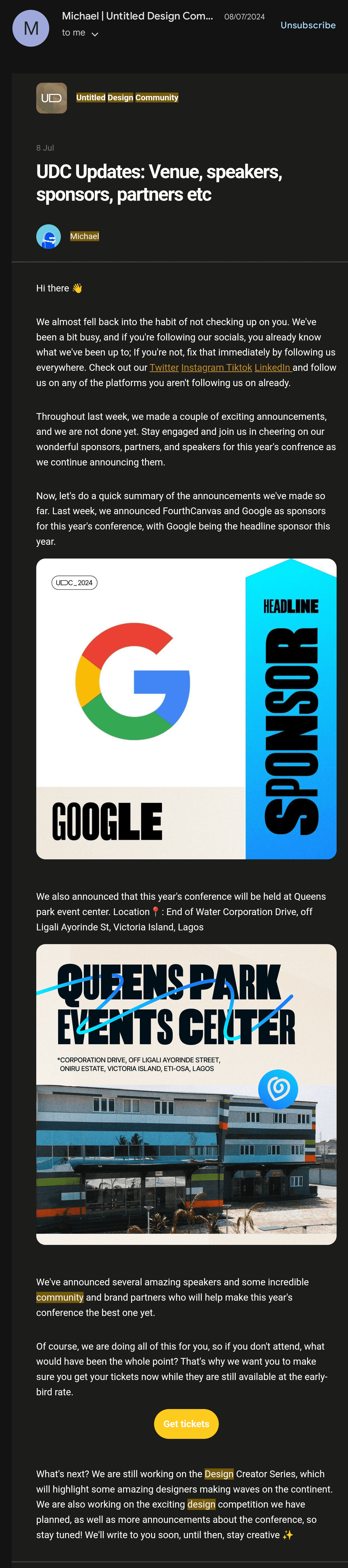 Untitled Designers is one of Africa's most recognized design communities, dedicated to engaging, empowering, and educating designers across Sub-Saharan Africa. Their flagship event, the Untitled Designers Conference, brings together designers, creatives, and industry leaders for a day of learning and connection. In 2024, I was brought in to direct the marketing for UDC2024 and the goal was simple: make it the biggest one yet.