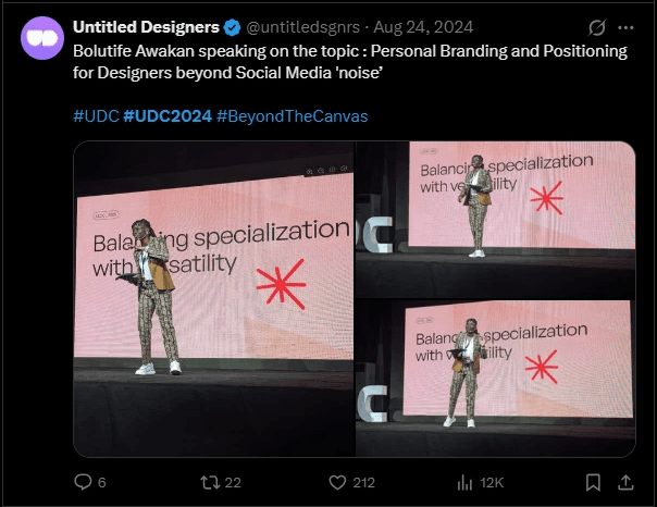 UDC2024 became the most successful edition of the Untitled Designers Conference to date. It recorded the highest ticket sales in the conference's history, drew over 3,000 attendees in person, reached an online audience of over 100,000, and sold out all merchandise. The testimonials from attendees speak for themselves. People traveled across Lagos and beyond just to be there and left saying it was the highlight of their year.